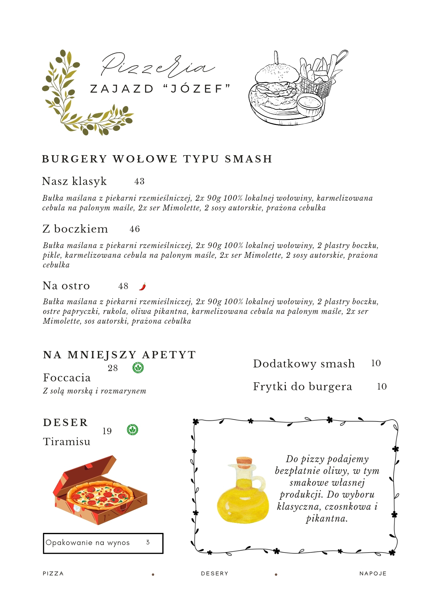 Odkryj urokliwe połączenie polskiej gościnności i włoskiej sztuki kulinarnej w Zajeździe "Józef". Nasza restauracja oferuje bogaty wybór tradycyjnych polskich dań oraz pizzerię z neapolitańskimi pizzami pieczonymi w piecu Calabria. Położony między Doliną Kościeliską, a Doliną Chochołowską Zajazd "Józef" to brama do niepowtarzalnych doświadczeń kulinarnych, gdzie świeże, lokalne składniki łączą się z ponadczasowymi przepisami.